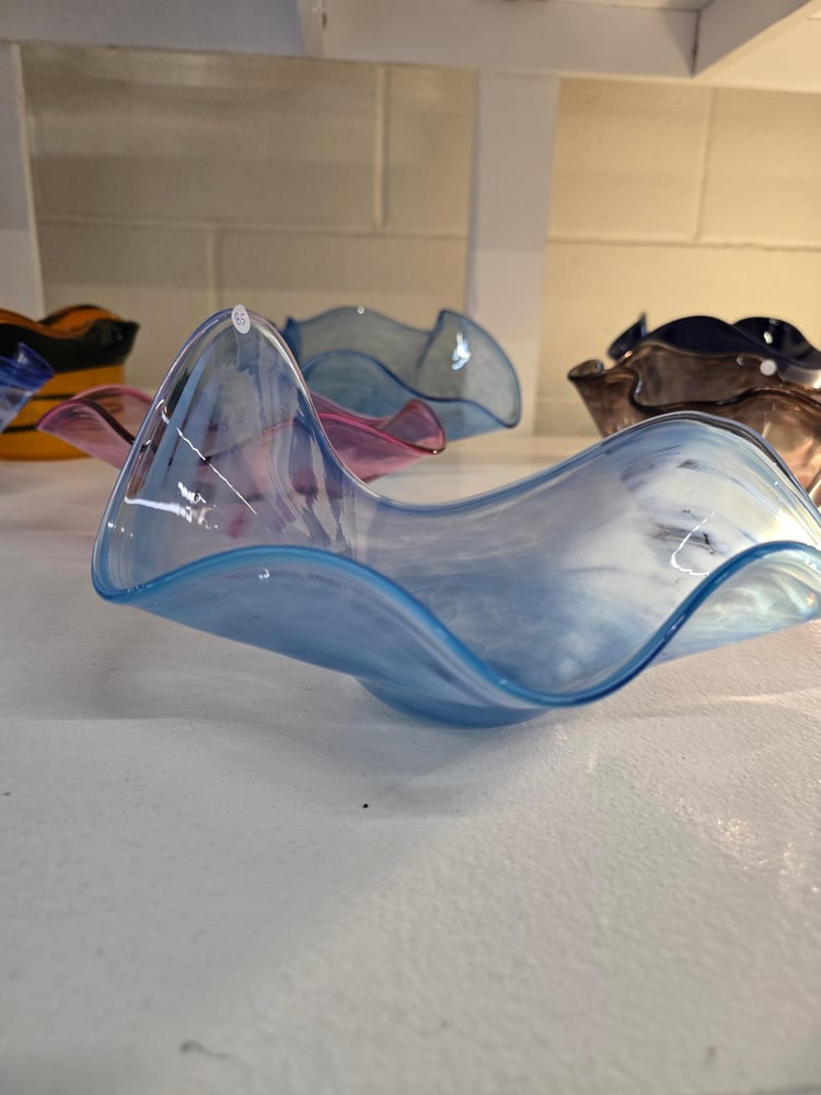 Blue Wavy Bowl 9" wide x 2-5" high