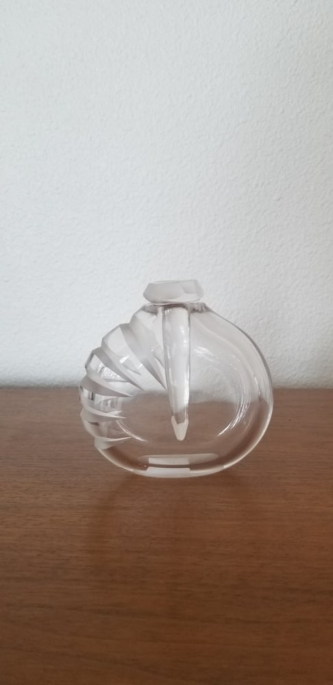 Hand blown and shaped clear crystal glass, diamond wheel engraved and polished.