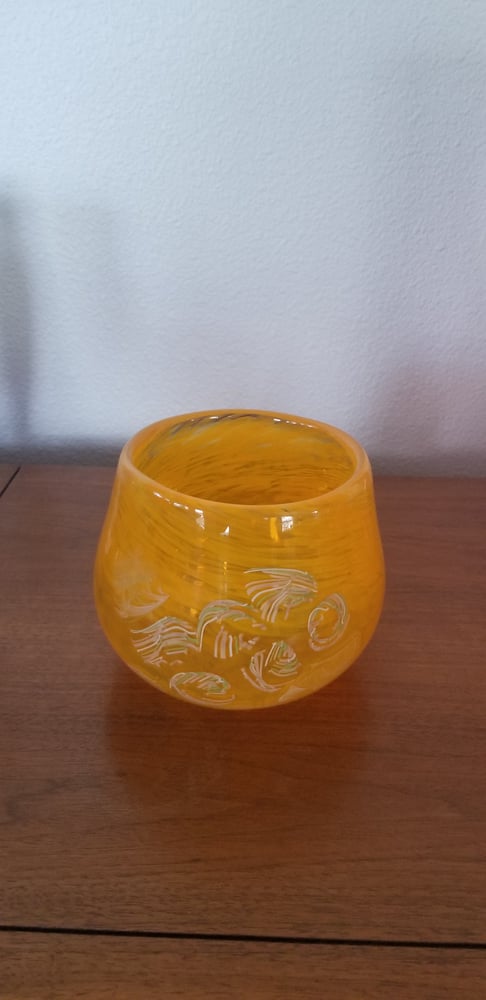 Saffron bowl with slices of custom made twisty cane sections